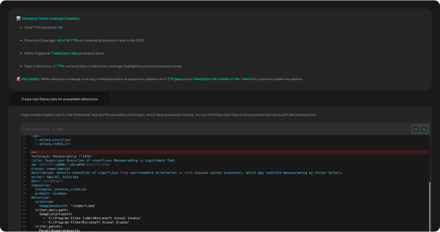 The SOC that learns and adapts—closing coverage gaps, tuning detections, and sharpening response with every cycle.
