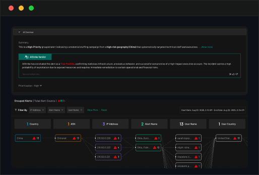 Speed alone isn’t enough. AiStrike correlates detections with identity, asset, and behavioral context to reveal the complete attack story.